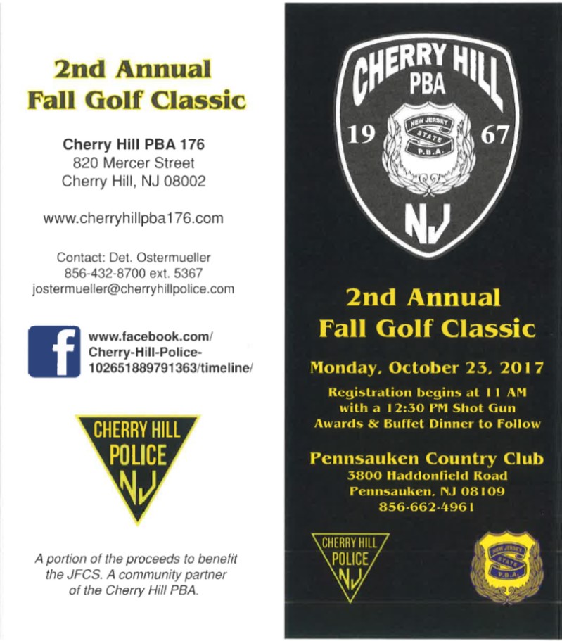 On Monday, October 23, Cherry Hill PBA 176 will be hosting its 2nd Annual Fall Golf Classic. The event will take place at the Pennsauken Country Club in Pennsauken, NJ.